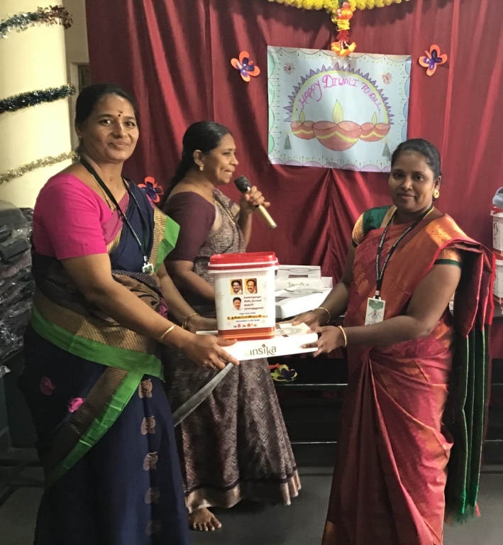 The couple Mr. Ramasamy and Mrs. Jaya Shyla contributed Diwali bonuses to all the teachers.