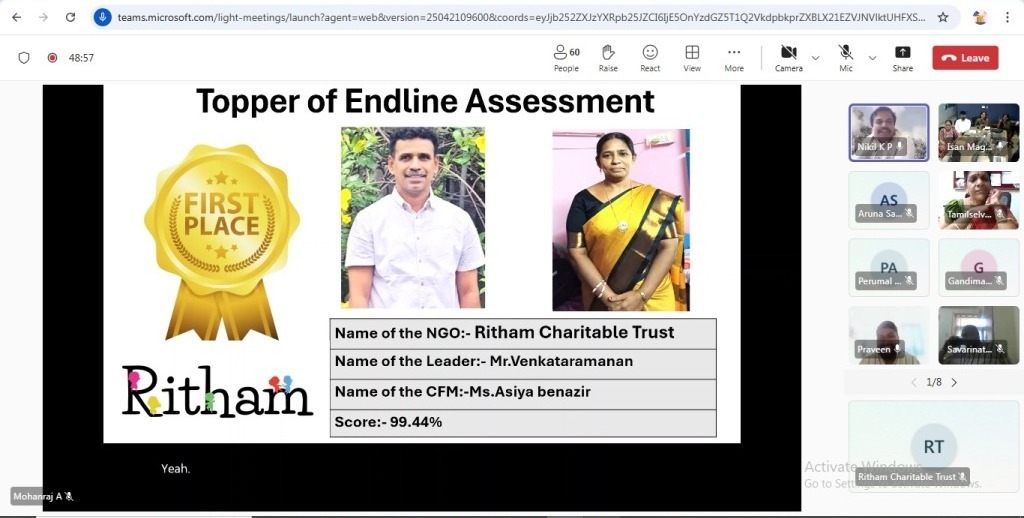 Our institution participated in the Capacity Building Programme conducted by Dhwani Foundation last year. A total of 28 institutions took part in the training, among which our institution was selected as the best-performing organization. The prize for this achievement was presented to our Principal and Teacher during the event held on 04.09.2025 at the Madras Management Association Hall, Thousand Lights, Chennai. Furthermore, on behalf of Dhwani Foundation, two drinking water purification units were donated to our school.