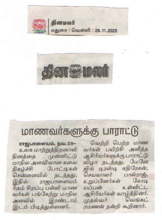 On the occasion of Diwali, our Rajapalayam Assembly Member Mr. S. Thangapandian, MLA, distributed sweets and clothes to our staff and teachers. We recall that he has been providing this