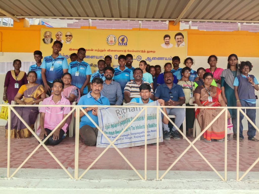 The Tamil Nadu Chief Minister’s Cup District-Level Sports Competition for the Differently-Abled was held on 04.09.2025 at the Virudhunagar District Sports Stadium, organized by the Virudhunagar District Sports Development Authority. More than 100 differently-abled students from across the district participated in the event.